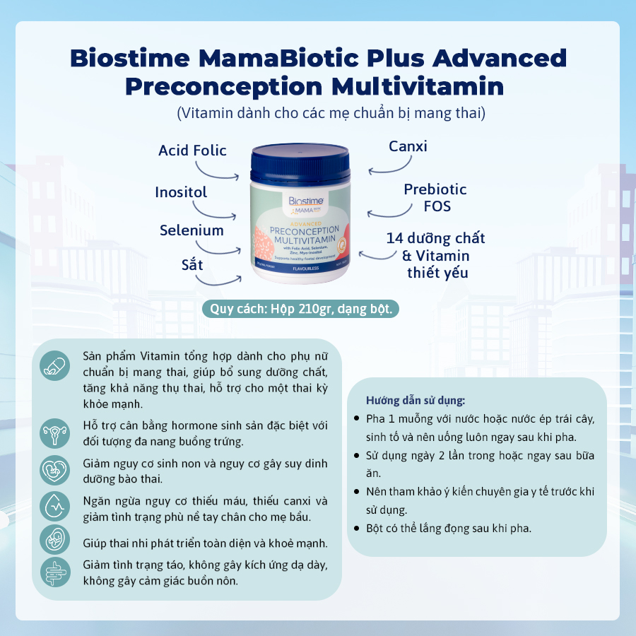 Biostime MamaBiotic Plus Advanced Preconception Multivitamin (Vitamin dành cho các mẹ chuẩn bị mang thai)