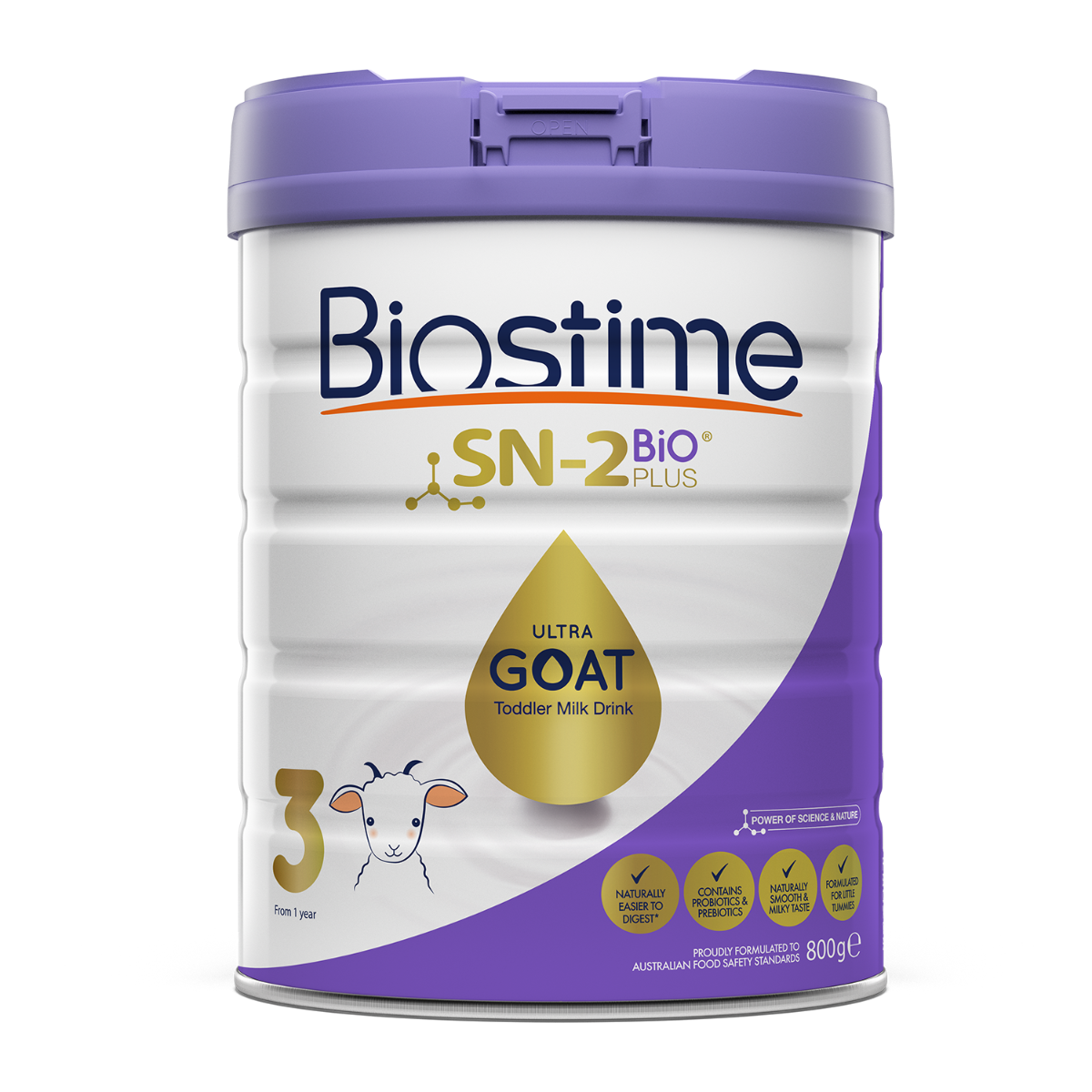 Trẻ đã bước đến một giai đoạn mới, giai đoạn tìm hiểu và khám phá mọi thứ xung quanh! Biostime® SN-2 BIO PLUS Ultra Goat Toddler Milk Drink với hệ lợi khuẩn prebiotic FOS cũng như B. Infantis, một loại lợi khuẩn được tìm thấy tự nhiên trong đường tiêu hóa của trẻ ăn sữa mẹ. Sản phẩm có vị hương vị thanh tự nhiên dễ uống. Sữa dê Biostime® SN-2 BIO PLUS Ultra Goat Toddler hỗ trợ tiêu hoá một cách tự nhiên*, kết hợp với các chất dinh dưỡng giúp hỗ trợ nhu cầu dinh dưỡng của trẻ.